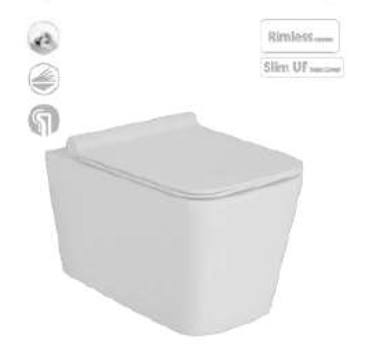 TRIP PLUS RIMLESS WALL HUNG CLOSET WITH UF SEAT COVER STAR WHITE